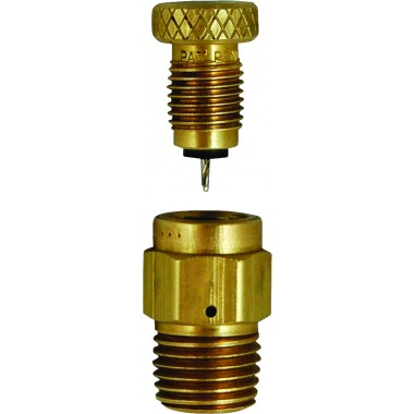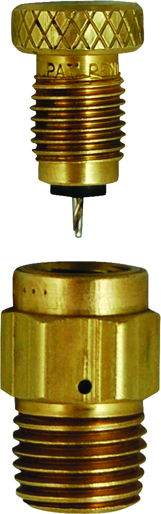 The Self-Cleaning Low Emission Vent Valve cleans out the orifice hole each time it is operated. The hole is cleaned out with a #54 orifice drill that reams the valve’s orifice hole each time the adjusting screw is loosened or tightened, eliminating nuisance orifice clogging. The reduced venting emissions is achieved by forcing product to pass between the #54 orifice hole and the flutes of the captured self-cleaning apparatus. The self-cleaning replacement screw (MEJ401SC) is compatible with all existing standard vent valve bodies allowing a standard vent valve to be converted into a self-cleaning low emission vent valve without reinstalling the valve body.