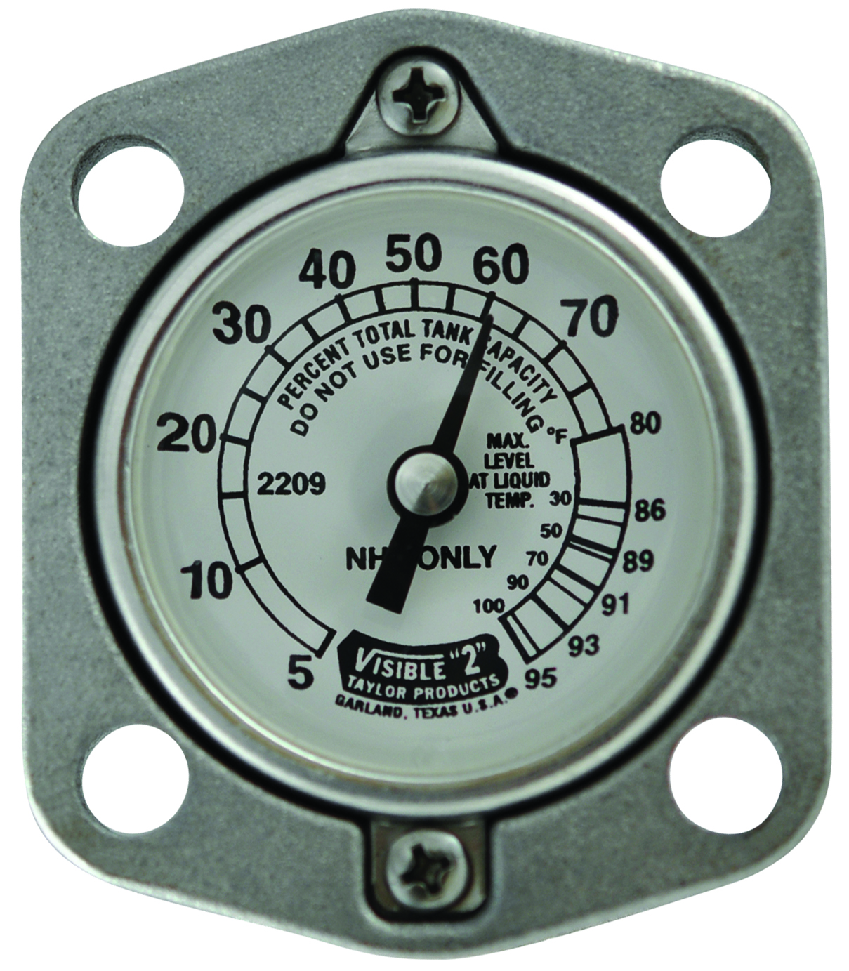 Float Gauges are designed to indicate the liquid level contents of NH3 Containers. These gauges mount in a Senior flanged coupling with a 2 1/2” [63,5] diameter bolt circle.