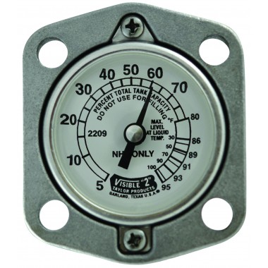 Senior gauges are supplied standard with Buna-N gasket and four zinc-plated steel mounting screws (5/16”-24 X 7/8”).  These gauges are available in top, side or end, and angle mouninng for above ground tanks.  A Visible "4" Dial is available.